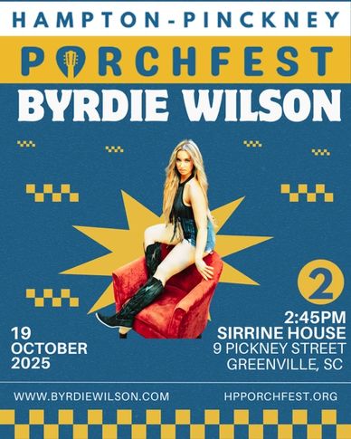 TICKET GIVEAWAY SHOW! Join me on Sunday, October 19th on the porch at 9 Pinckney Street, Greenville for the Hampton-Pinckney Porchfest at 2:45 pm!